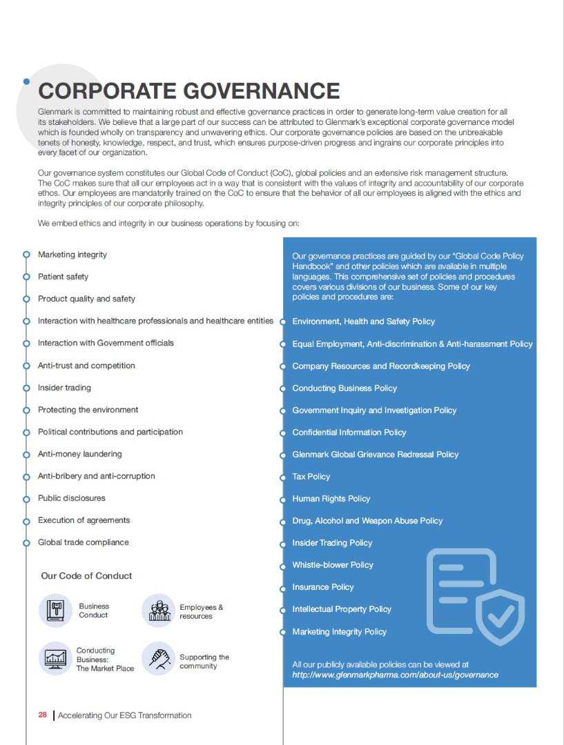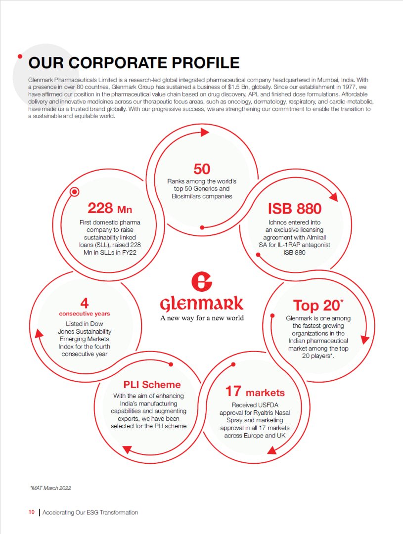 Glenmark Sustainability 2021-2022 Glenmark Sustainability 2021-2022 Client GlenmarkDomain PharmaceuticalsService Sustainability Reports Previous UPL Sustainability Report 2018-19 Next SBI Sustainability Report 2017-18 Date: 12/07/2023 Client : Glenmark Domain : Pharmaceuticals Service : Sustainability Reports Share on